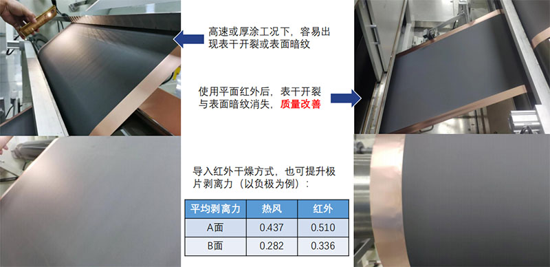 雷索红外整体解决方案:底涂/凹版与负极线实现纯红外方案,正极以红外为主, 电热包补充。完全取消锅炉与蒸汽/热油供热管道,建设维护简单,零碳排放。